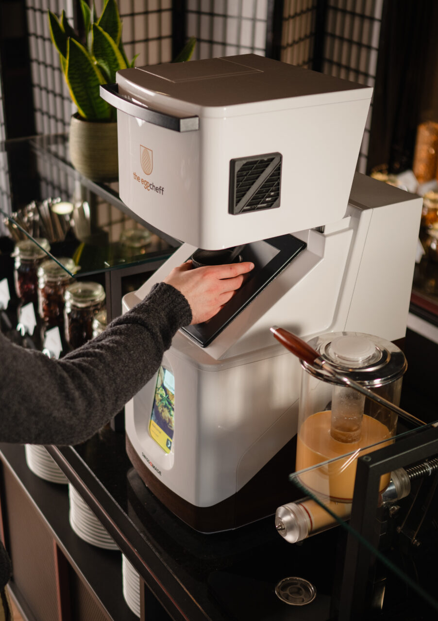 Eggcheff tillagar perfekt fluffig, färsk äggröra på en minut. Den gör detta genom att automatiskt lägga en gaffel i koppen för att röra ägget till perfektion under tillagningen. Koppen, tillsammans med gaffeln, tas ut efter tillagningen och du kan njuta av din nygjorda äggröra. Väl tillagade ägg är en bra källa till högkvalitativt protein, vitaminer och mineraler, vilket gör det till ett näringsrikt val för en måltid.